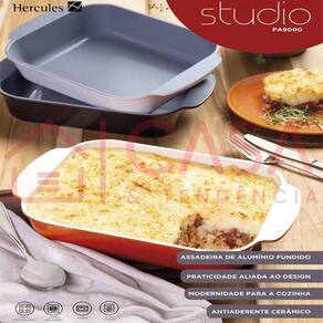 com visual moderno, alegre e sofisticado, as assadeiras da linha studio hercules são perfeitas para quem gosta de praticidade aliada a beleza. Possuindo um design requintado e elegante, é peça ideal para ir do forno à mesa. Material de alumínio fundido e antiaderente cerâmico, pintura resistente a alta temperatura. A linha de assadeiras hercules é ideal para quem procura modernidade e qualidade para a cozinha. Venha conhecer a linha completa das assadeiras hercules