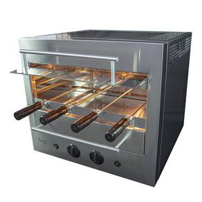 Produzido em aço inox 304, essa Churrasqueira conta com 4 espetos rotativos de capacidade de 1,5 Kg cada permitindo assar de forma homogênea diversos tipos de carnes.