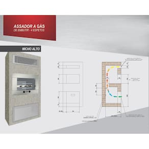 Assador A Gás De Embutir 4 Espetos Titan Gás Glp 220V Churrasqueira a gás Titan para EMBUTIR em nicho de alvenaria, seu espaço gourmet mais moderno e prático. É ideal para assar Carnes, Legumes, Pizzas e garantir um saboroso Churrasco. Possui sistema rotativo, iluminação interna e queimadores infravermelhos. Churrasqueira silenciosa e não produz fumaça. Descrição - Não produz fumaça; - 02 queimadores infravermelho; - Gabinete externo frontal MODULAR em aço inox AISI 304 escovado; - Bandeja coletora de gordura com frente de vidro; - Grade interna de apoio; - Controlador de queimador individual; - Válvula de segurança contra vazamento de gás; - Porta frontal de vidro temperado com sistema telescópico; - 04 Espetos rotativos com cabo TÉRMICO - Sendo 03 simples e 01 triplo; - Lâmpada interna; - Acendedor automático de fogo; - Espeto suportar 1,7 kg de carne. Informação Técnicas - Função: Assar carnes, peixes, legumes e pizzas; -capacidade total de carnes: 6,8 kg; - Numero de espetos: 4 - Giro do espeto: 6RPM - Tensão do Motorredutor Elétrico: 12v - Potência do Motorredutor elétrico: 28W - Número de queimadores: 2 UN - Tensão: 220V - Frequência: 60Hz - Lâmpada: Halopin G9, 220v, 40W - Consumo elétrico 0,06 Kw/h - Consumo gás por queimador: 190 g/h; - Consumo gás total: 380 g/h; - Gás: GLP; - Pressão de funcionamento do Gás: GLP 2,8 a 3,5 KPa; - Medidas produto: A 487 x L 703 x P 565mm - Medidas da embalagem: A 580 x L 640 x P 730 - Peso Líquido: 18 kg - Peso Bruto: 19 kg
