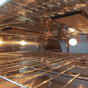 O Assador Bake Premium 04 conta com motor de 1/30 CV e consumo de gás natural de 190 g/h por queimador. Seus dois queimadores infravermelho possuem acendimento automático com luz piloto.
