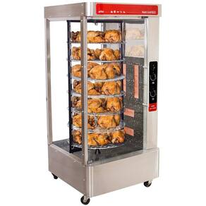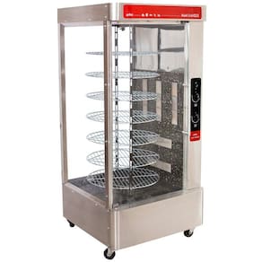 O Assador a Gás Multi Grill da Arke possui acabamento externo em aço inox escovado e acabamento interno esmaltado, que facilita a limpeza do produto. Têm cinco queimadores que além de assar os alimentos uniformemente, ainda reduzem o tempo necessário, proporcionando economia. Têm sete grades com sistema de rotação e capacidade para até 5 frangos em cada uma. A porta e a lateral do assador são feitas em vidro transparente, permitindo uma melhor visualização dos alimentos. Leva entre 2 horas e 2 horas e 30 minutos para assar e possui bandeja coletora de gordura.