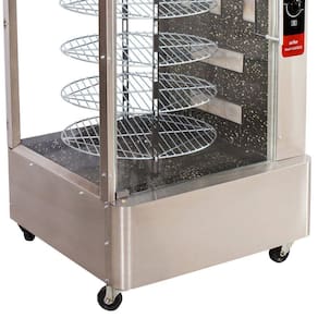 Características: Modelo: Multi Grill Referência de modelo: 5177 Tipo: A gás Tipo de gás: GLP Embutível: Não Potência: 1250 KAL Consumo de gás: 190 g/h por queimador Sistema rotativo: Sim Acendimento: Manual Queimadores: 5 Controle de temperatura: Sim Termostato: Não Iluminação: Não Resistência: Não possui Tempo para assar: 2h. a 2h30min. Capacidade: 10 kg por grade Posições de utilização: Vertical Grelha: 7 grelhas Grelha para peixe: Não Bandeja coletora de gordura: Sim Material: Aço Inox Estrutura: Acabamento externo em aço inox escovado e interno em aço esmaltado Porta: Vidro transparente Puxadores: Alumínio Motor: 1/4 CV Rodas: Sim, rodízios, dois com travas Desmontável: Não Consumo de energia: 0,28 kW/h Certificado pelo Inmetro: Portaria 371