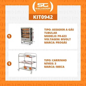 1 - Carro de serviço para transporte em aço inox com 3 prateleiras lisa - cód. 5116Assar de Frango Forno Rotativo Tubular 4 Espetos Pr-623 Bivolt - Progás