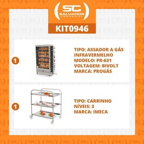 1 - Assador Frango Infra Vermelho 6 Espetos Garfo Pr-631 Bivolt Progás