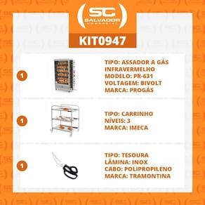 - Modelo PR-631 , queimadores infravermelhos e espetos tipo Garfo.