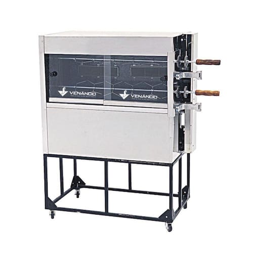 Equipamento de acordo com a portaria 371/09 do INMETRO com selo de conformidade, a Máquina de Assar Frangos possibilita assar vários tipos de alimentos. Conta com acabamento interno esmaltado a fogo, externo em aço inox 430, isolamento térmico em lã de rocha e espetos equipados com ganchos duplos e simples para melhor fixação dos frangos.