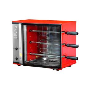 Possui também capacidade para 3 espetos giratórios, sendo eles 2 simples e 1 triplo, cada espeto suporta 1,5 kg de carne e assa 7,5 kg de carne por hora.