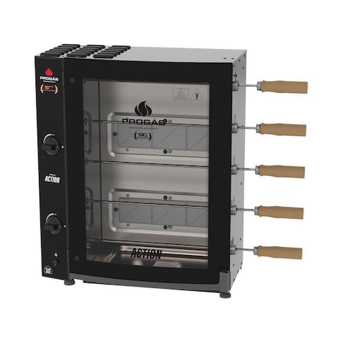 Muito importante:-- conferir produtos no ato do recebimento. Não aceitar produtos com embalagem violada amassado, rasgado, aberto, quebrado, etc , a recusa deve ser feita no ato.Forno assador rotativo 5 espetos infravermelho a gás prac-05i action bivolt - progás p43629o forno assador rotativo 5 espetos infravermelho a gás prac-05i action da progás é um equipamento de alta qualidade projetado para atender às necessidades profissionais na gastronomia. Com capacidade para 5 espetos, este forno proporciona um método eficiente e preciso de preparação, utilizando a tecnologia de aquecimento por infravermelho a gás, garantindo uma distribuição uniforme de calor para assar de maneira perfeita diversos tipos de carnes e alimentos. Sua versatilidade permite um controle preciso de temperatura e tempo de cocção, resultando em pratos saborosos e suculentos. Adaptável a ambientes variados, o forno assador rotativo prac-05i action é bivolt, proporcionando praticidade em diferentes configurações. Eleve o nível de sua produção culinária com este equipamento confiável, durável e de alto desempenho da progásinformações do produto:- estrutura em aço com acabamento em pintura epóxi;- gaveta coletora de gordura para facilitar o manuseio e a limpeza;- porta de vidro curvo temperado;- coletor de gordura acoplado ao vidro para evitar respingos;- acabamento interno em aço inox;- aquecimento através de infravermelho;- controle progressivo de chama máxima e mínima;- consumo médio de gás por queimador infravermelho: 180 g/h.Informações técnicas:- voltagem: bivolt energia elétrica utilizada apenas para girar os espetos - potência: 30w- consumo elétrico: 0,03 kwh- consumo gás: 180 g/h- sku salvador comercial: 014422- espetos: acompanha 5 espetos simples- capacidade: 1,3 kg por espeto - ao espetar a carne não ultrapassar o diâmetro de 100 mmdimensões:- embalagem: 69 cm a x 58 cm l x 40 cm p- produto: 64,7 cm a x 75 cm l x 33 cm p- espeto útil : 42 cm- espeto total : 63 cm- gaveta coletora: 29 cm l x 40 cm ppeso líquido: 16 kgpeso bruto: 19 kgforno assador rotativo, 5 espetos, infravermelho a gás, prac-05i action, progás, gastronomia profissional, tecnologia infravermelha, controle preciso de temperatura, cozinha profissional, equipamento culinário, preparo de carnes, distribuição uniforme de calor, versatilidade culinária, bivolt, alta performance, qualidade progás, durabilidade.