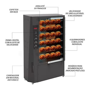 dando um toque de sofisticação e modernidade a sua loja. O regulador de velocidade permite ter mais controle sobre o assado, proporcionando mais qualidade e até mesmo economia de gás.