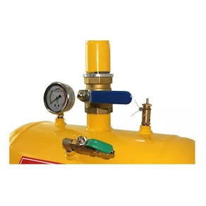 Dados Técnicos: • Pressão de trabalho: 87/116lb; • Reservatório de Ar Super - Reforçado conforme Testes Hidrostáticos; • Válvula de Segurança; • Manômetro com Glicerina; • Válvula de cobre (bronze e latão)