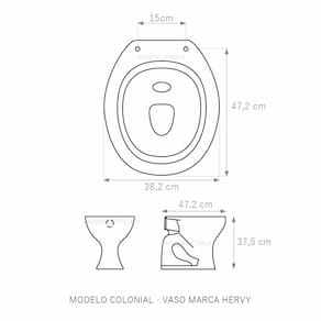Assento Sanitário Almofadado (tampa de vaso) fabricado em polipropileno e polietileno especial. Resistente, durável, com excelente acabamento e design sofisticado. Assento macio, arco almofadado.Devido a sua composição este produto é totalmente impermeável e de fácil limpeza e higienização. Compatível com vasos sanitários de descarga convencional e também vasos com caixa acoplada. Acabamento brilhante no tampo e no assento. Fixação regulável para o perfeito encaixe na louça sanitária. Fácil limpeza, é higiênico e não acumula sujeira. O assento é acompanhado por parafusos para instalação e acabamentos. Embalagem dupla reforçada garante o recebimento do produto totalmente protegido. Especificações: - Dimensões da caixa: largura: 50,00cm. Altura: 4,00cm comprimento: 40,00cm - Acabamento: brilhante - Uso: este assento é adequado para uso na louça Hervy modelo Colonial - Garantia: 3 meses - Itens inclusos: Tampa e assento, parafusos e embalagem duplamente reforçada. Instalação: posicione o produto, devidamente centralizado, em cima do vaso sanitário. Encaixe os parafusos e encaixe as porcas. Aperte até que o assento esteja firme no vaso. Manutenção: recomendamos a limpeza periódica com pano levemente umedecido com sabão neutro. Não usar esponjas abrasivas ou palha de aço nem qualquer tipo de produto químico.