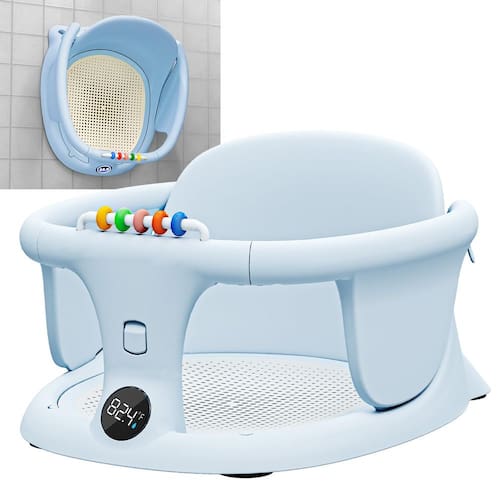 Essencial para o banho do bebê: esta cadeira de banho para bebês é feita de materiais de alta qualidade, duráveis e ecológicos, combinando PP e TPR. É 100% seguro, suave para a pele e fácil de limpar. Permite que seu bebê se sente nele durante o banho, oferecendo proteção multifacetada, evitando que o bebê escorregue e permitindo que os pais cuidem do banho do bebê de forma abrangente. - Essencial para o banho do bebê: esta cadeira de banho para bebês é feita de materiais de alta qualidade, duráveis e ecológicos, combinando PP e TPR. É 100% seguro, suave para a pele e fácil de limpar. Permite que seu bebê se sente nele durante o banho, oferecendo proteção multifacetada, evitando que o bebê escorregue e permitindo que os pais cuidem do banho do bebê de forma abrangente. - ?Design de exibição de temperatura da água?Esta cadeira de banho para bebês tem uma função atualizada de exibição de temperatura da água. Desde que a parte inferior da cadeira de banho com a água, a exibição de temperatura mostrará a temperatura atual da água em Fahrenheit e Celsius. Isso evita que o bebê seja escaldado por água excessivamente quente, garantindo uma experiência de banho mais segura para o bebê. - ?Design de brinquedo ativado à mão?Um brinquedo colorido de ábaco é instalado na frente da cadeira de banho. Pode atrair a atenção do bebê durante o banho, evitando que o bebê se levante e se mova sem descanso, tornando mais fácil para os pais banharem seus filhos. - ?Ventosas antiderrapantes potentes?A parte inferior da cadeira de banho apresenta um design ergonômico de postura sentada, equipada com um encosto alto e apoios de braços de porta de borboleta, fazendo o bebê se sentir confortável. As ventosas antiderrapantes resistentes garantem estabilidade, aderindo firmemente a qualquer superfície de banho lisa e proporcionando uma experiência de banho segura. - ?Um ótimo presente para bebês?Seja para você ou um amigo, esta cadeira de banho unissex atenciosa e prática é um presente ideal para inauguração de casa ou chá de bebê. Surpreenda seus entes queridos com um produto exclusivo que é perfeito para novas mães e gestantes. Certamente conquistará sua admiração. - ?Instalação simples e fácil operação?Você pode montá-lo facilmente em 3 minutos sem nenhuma ferramenta. Basta encaixar algumas peças juntas para concluir a montagem do produto, o que é muito adequado para usuários que não são bons em instalação.