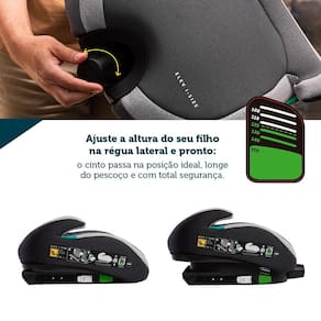 Características: Indicado para crianças de 4 a 12 anos (aprox. 100 cm a 150 cm de altura) Ajuste manual de altura que acompanha o crescimento da criança Assento amplo, largo e estruturado para máximo conforto e estabilidade Instalação Isofix para fixação segura e confiável no veículo Apoio de braços integrado, oferecendo ergonomia e conforto Estofamento super premium, ideal para trajetos longos Capa removível e lavável em máquina, facilitando a limpeza e manutenção Design moderno e compacto, ideal para qualquer tipo de carro Sistema de regulagem que mantém o cinto sempre bem posicionado