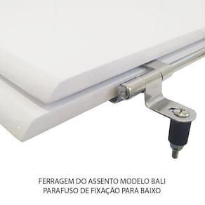 Assento Sanitário tampa de vaso fabricado em madeira MDF com pintura laqueada, com proteção raios UV, que garante excelente acabamento e durabilidade. Compatível com vasos bacias/louças sanitários com ou sem caixa acoplada. Tem calços de PVC instalados na tampa e no assento para proporcionar estabilidade ao uso, pois distribui o peso uniformemente sobre a louça sanitária. Montagem simples e fácil. Possui ferragem em alumínio anodizado que não enferruja/oxida e oferece muita resistência. O assento é acompanhado por parafusos para instalação. Embalagem dupla reforçada garante o recebimento do produto totalmente protegido. Especificações: - Dimensões da caixa: largura: 49,50cm. Altura: 4,00cm comprimento: 39,50cm - Peso do produto: 1,98kg - Acabamento: brilhante - Uso: este assento é adequado para uso na louça Incepa modelo Bali - Garantia: 3 meses - Itens inclusos: Tampa e assento em MDF com calços de PVC, ferragem inoxidável, embalagem duplamente reforçada. Contém todos os parafusos e encaixes para instalação, sendo necessária somente uma chave de fenda para instalar o produto na louça sanitária. Instalação: posicione o produto, devidamente centralizado, em cima do vaso sanitário. Sem desmontar a ferragem, insira as buchas de borracha dentro dos furos da bacia sanitária. Encaixe os parafusos e posicione as porcas. Utilizando uma chave de fenda, aperte o parafuso no sentido horário até que o assento esteja firme e fixo no vaso. Manutenção: recomendamos a limpeza periódica com pano levemente umedecido com sabão neutro. Não usar esponjas abrasivas ou palha de aço nem qualquer tipo de produto químico.