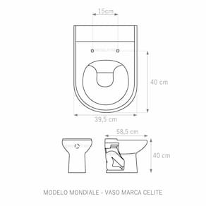Assento Sanitário tampa de vaso fabricado em madeira MDF com pintura laqueada, com proteção raios UV, que garante excelente acabamento e durabilidade. Compatível com vasos bacias/louças sanitários com ou sem caixa acoplada. Tem calços de PVC instalados na tampa e no assento para proporcionar estabilidade ao uso, pois distribui o peso uniformemente sobre a louça sanitária. Montagem simples e fácil. Possui ferragem em alumínio anodizado que não enferruja/oxida e oferece muita resistência. O assento é acompanhado por parafusos para instalação. Embalagem dupla reforçada garante o recebimento do produto totalmente protegido. Especificações: - Dimensões da caixa: largura: 51,50cm. Altura: 4,00cm comprimento: 38,00cm - Peso do produto: 1,98kg - Acabamento: brilhante - Uso: este assento é adequado para uso na louça Celite modelo Mondiale - : 3 meses - Itens inclusos: Tampa e assento em MDF com calços de PVC, ferragem inoxidável, embalagem duplamente reforçada. Contém todos os parafusos e encaixes para instalação, sendo necessária somente uma chave de fenda para instalar o produto na louça sanitária. Instalação: posicione o produto, devidamente centralizado, em cima do vaso sanitário. Sem desmontar a ferragem, insira as buchas de borracha dentro dos furos da bacia sanitária. Encaixe os parafusos e posicione as porcas. Utilizando uma chave de fenda, aperte o parafuso no sentido horário até que o assento esteja firme e fixo no vaso. Manutenção: recomendamos a limpeza periódica com pano levemente umedecido com sabão neutro. Não usar esponjas abrasivas ou palha de aço nem qualquer tipo de produto químico. Marca: Não Informado Ean: 7897012904081