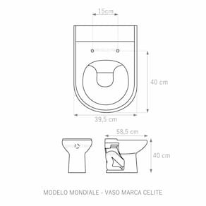 Assento Sanitário (tampa de vaso) fabricado em madeira MDF com pintura laqueada, com proteção raios UV, que garante excelente acabamento e durabilidade. Compatível com vasos (bacias/louças) sanitários com ou sem caixa acoplada. Tem calços de PVC instalados na tampa e no assento para proporcionar estabilidade ao uso, pois distribui o peso uniformemente sobre a louça sanitária. Montagem simples e fácil. Possui ferragem em alumínio anodizado que não enferruja/oxida e oferece muita resistência. O assento é acompanhado por parafusos para instalação. Embalagem dupla reforçada garante o recebimento do produto totalmente protegido. Especificações: - Dimensões da caixa: largura: 51,50cm. Altura: 4,00cm comprimento: 38,00cm - Peso do produto: 1,98kg - Acabamento: brilhante - Uso: este assento é adequado para uso na louça Celite modelo Mondiale - Garantia: 3 meses - Itens inclusos: Tampa e assento em MDF com calços de PVC, ferragem inoxidável, embalagem duplamente reforçada. Contém todos os parafusos e encaixes para instalação, sendo necessária somente uma chave de fenda para instalar o produto na louça sanitária. Instalação: posicione o produto, devidamente centralizado, em cima do vaso sanitário. Sem desmontar a ferragem, insira as buchas de borracha dentro dos furos da bacia sanitária. Encaixe os parafusos e posicione as porcas. Utilizando uma chave de fenda, aperte o parafuso no sentido horário até que o assento esteja firme e fixo no vaso. Manutenção: recomendamos a limpeza periódica com pano levemente umedecido com sabão neutro. Não usar esponjas abrasivas ou palha de aço nem qualquer tipo de produto químico. Marca: LOJAROCCA