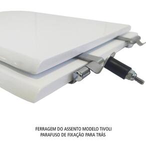 Assento Sanitário tampa de vaso fabricado em madeira MDF com pintura laqueada, com proteção raios UV, que garante excelente acabamento e durabilidade. Compatível com vasos bacias/louças sanitários com ou sem caixa acoplada. Tem calços de PVC instalados na tampa e no assento para proporcionar estabilidade ao uso, pois distribui o peso uniformemente sobre a louça sanitária. Montagem simples e fácil. Possui ferragem em alumínio anodizado que não enferruja/oxida e oferece muita resistência. O assento é acompanhado por parafusos para instalação. Embalagem dupla reforçada garante o recebimento do produto totalmente protegido. Especificações: - Dimensões da caixa: largura: 49,50cm. Altura: 4,00cm comprimento: 39,50cm - Peso do produto: 1,98kg - Acabamento: brilhante - Uso: este assento é adequado para uso na louça Ideal Standard modelo Tivoli - Garantia: 3 meses - Itens inclusos: Tampa e assento em MDF com calços de PVC, ferragem inoxidável, embalagem duplamente reforçada. Contém todos os parafusos e encaixes para instalação, sendo necessária somente uma chave de fenda para instalar o produto na louça sanitária. Instalação: posicione o produto, devidamente centralizado, em cima do vaso sanitário. Sem desmontar a ferragem, insira as buchas de borracha dentro dos furos da bacia sanitária. Encaixe os parafusos e posicione as porcas. Utilizando uma chave de fenda, aperte o parafuso no sentido horário até que o assento esteja firme e fixo no vaso. Manutenção: recomendamos a limpeza periódica com pano levemente umedecido com sabão neutro. Não usar esponjas abrasivas ou palha de aço nem qualquer tipo de produto químico.