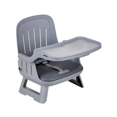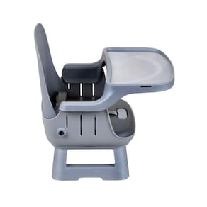 Montagem rápida e fácil. Bandeja removível. Design prático e funcional. 2 regulagens de altura. Cinto de segurança de 3 pontos. Dobrável e compacto quando fechado. Cinto para fixação em cadeira de mesa adulta.