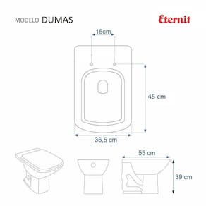 Assento para Vaso Sanitário Eternit Dumas Branco em Resina traz beleza e praticidade ao seu banheiro. Este Assento Sanitário é produzido em Resina de Poliéster. Totalmente impermeável, com acabamento brilhante e ferragem metálica muito resistente que não enferruja. Este Assento Sanitário ser usado em vaso sanitário com ou sem caixa acoplada. É muito rápido e fácil instalar, acompanha parafusos de fixação e com apenas uma chave de fenda é possível instalar no vaso sanitário. Entrega garantida e rastreada com embalagem dupla reforçada. Cor: Branco. Distância entre os parafusos: 15cm. Acabamento: brilhante. Dicas: Itens inclusos: assento e tampa de resina de poliéster e ferragem completa. Produto completo, pronto para instalar no vaso sanitário. Limpeza: recomenda-se a limpeza com água e sabão neutro e não utilizar produtos abrasivos ou químicos. Instalação: Sem desmontar o produto, posicione os dois parafusos com borrachas pretas sobre os buracos da bacia sanitária e os encaixe dentro deles. Aperte com a chave de fenda no sentido horário até ficar firme. Importante: este anúncio inclui somente o produto conforme descrição acima. Todos os elementos decorativos das fotos não estão inclusos. Observação: O código 6LPF gravado na louça sanitária corresponde ao fluxo de água de uma descarga e não indica o modelo da mesma.