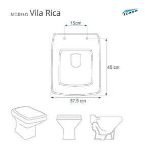 Compatível com o vaso sanitário Icasa modelo Vila Rica com ou sem caixa acoplada.