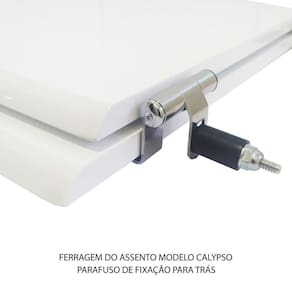 Assento Sanitário tampa de vaso fabricado em madeira MDF revestido com laminado poliéster, com excelente acabamento fosco e texturizado o que garante uma durabilidade maior. A laminação de poliéster torna este produto impermeável e de fácil limpeza e higienização. Compatível com vasos bacias/louças sanitários com ou sem caixa acoplada. Os calços de PVC são instalados na tampa e no assento antes da laminação para evitar a entrada da água ou que eventualmente se soltem. Montagem simples e fácil. Possui ferragem em alumínio anodizado que não enferruja/oxida e oferece muita resistência. O assento é acompanhado por parafusos para instalação. Embalagem dupla reforçada garante o recebimento do produto totalmente protegido. Especificações: - Dimensões da caixa: largura: 51,50cm. Altura: 4,00cm comprimento: 38,00cm - Peso do produto: 1,98kg - Acabamento: fosco e texturizado - Uso: este assento é adequado para uso na louça Incepa modelo Calypso - Garantia: 3 meses - Itens inclusos: Tampa e assento com calços de PVC, ferragem inoxidável, embalagem duplamente reforçada. Contém todos os parafusos e encaixes para instalação, sendo necessária somente uma chave de fenda para instalar o produto na louça sanitária. Instalação: posicione o produto, devidamente centralizado, em cima do vaso sanitário. Sem desmontar a ferragem, insira as buchas de borracha dentro dos furos da bacia sanitária. Utilizando uma chave de fenda, aperte o parafuso no sentido horário até que o assento esteja firme no vaso. Manutenção: recomendamos a limpeza periódica com pano levemente umedecido com sabão neutro. Não usar esponjas abrasivas ou palha de aço nem qualquer tipo de produto químico. Marca: Lojarocca
