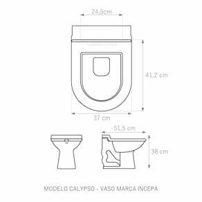 Assento Poliéster Laminado Calypso Preto Para Vaso Incepa Preto Assento Sanitário tampa de vaso fabricado em madeira MDF revestido com laminado poliéster, com excelente acabamento fosco e texturizado o que garante uma durabilidade maior. A laminação de poliéster torna este produto impermeável e de fácil limpeza e higienização. Compatível com vasos bacias/louças sanitários com ou sem caixa acoplada. Os calços de PVC são instalados na tampa e no assento antes da laminação para evitar a entrada da água ou que eventualmente se soltem. Montagem simples e fácil. Possui ferragem em alumínio anodizado que não enferruja/oxida e oferece muita resistência. O assento é acompanhado por parafusos para instalação. Embalagem dupla reforçada garante o recebimento do produto totalmente protegido. Especificações: - Dimensões da caixa: largura: 51,50cm. Altura: 4,00cm comprimento: 38,00cm - Peso do produto: 1,98kg - Acabamento: fosco e texturizado - Uso: este assento é adequado para uso na louça Incepa modelo Calypso - Garantia: 3 meses - Itens inclusos: Tampa e assento com calços de PVC, ferragem inoxidável, embalagem duplamente reforçada. Contém todos os parafusos e encaixes para instalação, sendo necessária somente uma chave de fenda para instalar o produto na louça sanitária. Instalação: posicione o produto, devidamente centralizado, em cima do vaso sanitário. Sem desmontar a ferragem, insira as buchas de borracha dentro dos furos da bacia sanitária. Utilizando uma chave de fenda, aperte o parafuso no sentido horário até que o assento esteja firme no vaso. Manutenção: recomendamos a limpeza periódica com pano levemente umedecido com sabão neutro. Não usar esponjas abrasivas ou palha de aço nem qualquer tipo de produto químico. Marca: Lojarocca