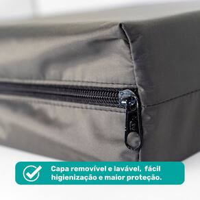 Capa impermeável, removível e lavável: fácil higienização e maior proteção.