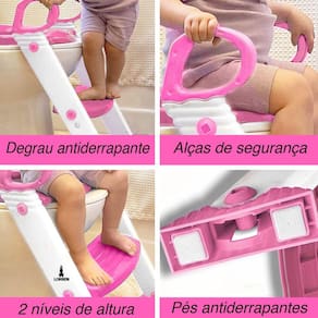Assento Redutor Infantil Escadinha Vaso Sanitário LorbenO Assento Redutor Escadinha Lorben foi desenvolvido para tornar o treinamento de desfralde uma fase divertida para as crianças, estimulando sua independência.Transforma banheiros de tamanho adulto em assentos de treinamento adequados para crianças, garantindo que se sintam mais seguras.Feito em polipropileno não tóxico, muito fácil de higienizar.Seu design é adequado à maioria dos vasos sanitários padrão com uma altura de 14" (16,93cm/35-43cm) e tem resistência para suportar até cerca de 27kg.Dobrável, cabe em qualquer cantinho do banheiro. É muito simples e não toma tempo quando os adultos querem usar o vaso sanitário após o uso do bebê.Possui um degrau largo antiderrapante com duas opções de altura e alças em ambos os lados, que auxiliam as crianças a subirem na escadinha com total segurança.Marca: LorbenMaterial: PolipropilenoCor: Azul/Amarelo/Vermelho, Branco/Azul ou Branco/Rosa (Escolha a cor DISPONÍVEL no momento da compra depois não há como alterarInclui:1 Assento Redutor EscadinhaKit de montagemDimensões do produto: 61x38x32cmPeso do produto: 1,140kg aproximadamenteTamanho da embalagem: 51x37,5x7,5cmPeso da embalagem: 1,555kgCódigo do produto: 6022Imagens ilustrativas. As tonalidades podem variar.
