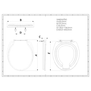📌 Medidas (Com Tampa): Conforme imagem do anúncio. • Comprimento: 42,8cm. • Largura: 37,1cm. • Espessura (Assento + tampa): 4,5cm. • Distância entre parafusos de: 13,8 até 16,8cm. 📌 Medidas (Sem Tampa): Conforme imagem do anúncio. • Comprimento: 41,1cm. • Largura: 37,1cm. • Espessura (Assento): 4,5cm. • Distância entre parafusos de: 13,8 até 16,8cm.