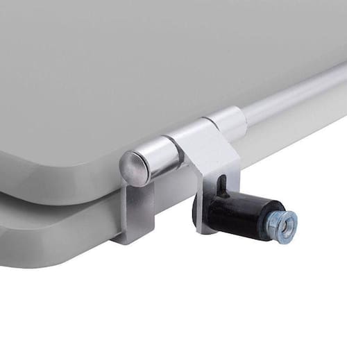 O encaixe do assento sanitário no vaso é feito por uma ferragem metálica que não oxida e não enferruja.