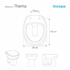 Compatível com o vaso sanitário Incepa modelo Thema com ou sem caixa acoplada.