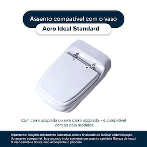 Este assento sanitário é compatível para uso em vaso sanitário Ideal Standard modelo Aero com ou sem caixa acoplada.