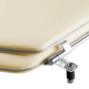 Assento Sanitário Almofadado Azaléa Bege Claro para vaso Celite é a escolha perfeita para seu banheiro trazendo beleza e praticidade. Este Assento Sanitário é produzido com base em MDF, camada de espuma macia e revestimento em vinil plástico brilhante. É muito macio e confortável. A ferragem é metálica em alumínio anodizado e não enferruja.