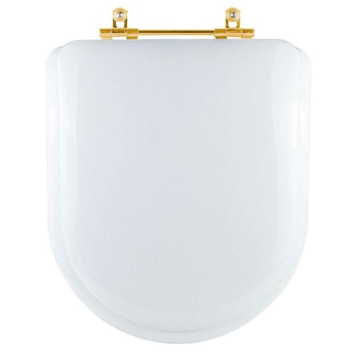 O Assento Sanitário Almofadado Carrara Branco para vaso Deca com Ferragem Dourada é a opção ideal para quem busca combinar conforto com elegância em seu banheiro.