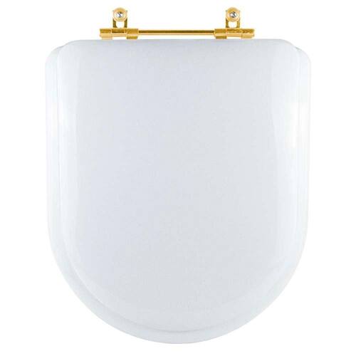 O Assento Sanitário Almofadado Carrara Branco para vaso Deca com Ferragem Dourada é a opção ideal para quem busca combinar conforto com elegância em seu banheiro.
