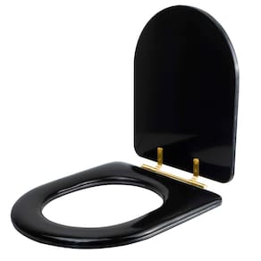 O Assento Sanitário Almofadado Carrara Preto Para Louça Deca com Ferragem Dourada é a opção ideal para quem busca combinar conforto com elegância em seu banheiro.