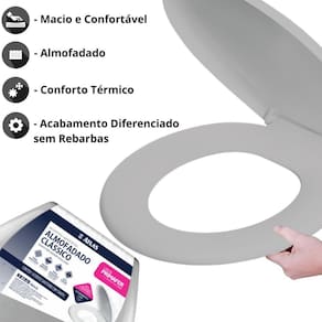 Assento tampa vaso sanitário oval almofadado atlas Este assento sanitário almofadado é preenchido com espuma de poliuretano pu , um material macio e confortável que oferece uma experiência agradável durante o uso do banheiro. Sua tampa envolvente proporciona um acabamento liso e elegante, adaptando-se facilmente a qualquer tipo de banheiro. O assento acompanha um kit para fixação e possui encaixe universal, o que facilita a instalação em qualquer tipo de vaso sanitário. Além disso, possui um suspiro na parte traseira que auxilia na ventilação e reduz a umidade, evitando o acúmulo de odores desagradáveis. Este assento almofadado é ideal para consumidores exigentes que buscam conforto e qualidade em seu banheiro. Sua aparência elegante e design clássico, combinados com sua maciez e facilidade de instalação e limpeza, tornam-no uma escolha atraente para qualquer pessoa.