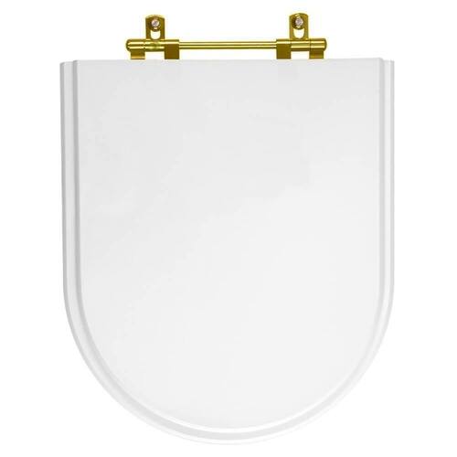 Itens inclusos: assento e tampa em madeira MDF com pintura laqueada com ferragem dourada em alumínio anodizado.