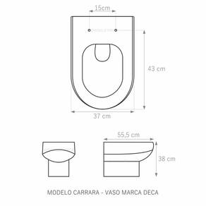 Assento Sanitário (tampa de vaso) fabricado em polipropileno, resistente, durável, com excelente acabamento e proteção contra fungos e bactérias. O produto é totalmente impermeável e de fácil limpeza e higienização. Sua superfície lisa, evita acúmulo de sujeira o que proporciona muito mais higiene ao seu banheiro. Compatível com vasos sanitários de descarga convencional e também vasos com caixa acoplada. Tem tampa com cobertura total e brilhante. Parafusos de fixação com regulagem excêntrica. Sistema Soft Close (Fechamento Suave) que amortece a batida, evitando ruídos. O assento é acompanhado por kit de fixação para instalação. Embalagem selada e papelão microondulado garante o recebimento do produto totalmente protegido. Especificações: - Dimensões da caixa: largura: 49,00cm. Altura: 7,00cm comprimento: 41,50cm - Acabamento: brilhante - Uso: este assento é adequado para uso na louça Deca modelo Carrara - Garantia: 3 meses - Itens inclusos: Tampa e assento, parafusos, acabamentos e embalagem duplamente reforçada.