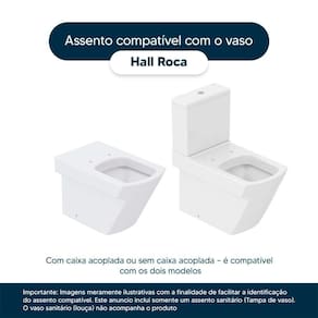 Detalhes e Cuidados Especiais: * Cor: Branco * Compatibilidade: Modelo Hall da marca Roca * Conteúdo da Embalagem: Assento sanitário, parafusos de fixação e instruções de instalação. * Fabricante do Assento Sanitário: Pontto Lavabo.