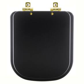 Assento Sanitário Com Amortecedor Piano Preto Fosco Para Vaso Deca Com Ferragem Dourada Dê um toque de elegância e modernidade ao seu banheiro com o Assento Sanitário com Amortecedor Piano Preto Fosco para vaso Deca com Ferragem Dourada. Com seu sistema exclusivo de fechamento suave, seguindo as últimas tendências em decoração, proporciona uma experiência moderna e funcional. Elegância e Diferenciação: Um design refinado e diferenciais de alto padrão. Com acabamento de excelência e ferragens em alumínio anodizado na cor Dourada que não oxidam nem enferrujam, ele é a combinação perfeita de beleza e durabilidade.
