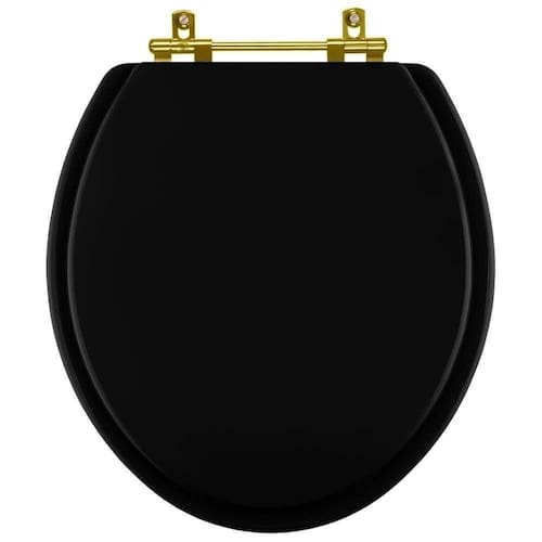 Assento Sanitário Convencional Oval Universal Preto Com Ferragem Dourada