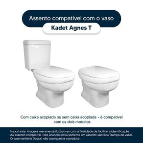 Detalhes e Cuidados Especiais: * Cor: Branco * Compatibilidade: Modelo Kadetda marca Agnes.T* Conteúdo da Embalagem: Assento sanitário, parafusos de fixação e instruções de instalação. * Fabricante do Assento Sanitário: Pontto Lavabo (enviado na caixa conforme foto no anúncio).
