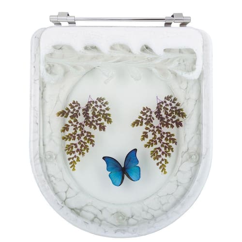 Assento Sanitário Decorado Calypso marmorizado Branco com Borboleta Azul e Avencas é a escolha perfeita para seu banheiro. O Assento Sanitário Poliéster é considerado o melhor tipo de assentos sanitários do mercado pelo seu acabamento impecável e excelente durabilidade.