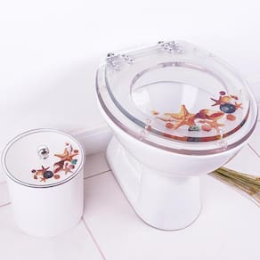 Assento sanitário fabricado em resina poliéster transparente com decoração de conchas do mar inédita e exclusiva e com acabamento de superfície polido de alto brilho. ferragem ultrarresistente e que não oxida com elevadíssimo padrão de acabamento. Possui 10 calços de pvc distribuídos na tampa e no assento, que possibilitam total estabilidade sobre a louça. maciço em resina de poliéster é totalmente impermeável. Com excepcional durabilidade tem design específico e diferenciado. Importante: este anuncio inclui somente os assentos sanitários. Todos os elementos decorativos das fotos não estão inclusos (ex: vaso sanitário, lixeira, etc) informações técnicas: principais componentes: tampa e assento em resina virgem de poliéster, calços de pvc para assentamento na louça, ferragem em metal inoxidável com sistema de fixação regulável, embalagem dupla reforçada. compatibilidade: izy (deca), fiore/flamingo (incepa), azálea (celite), sabará/diamantina (icasa), fiori (fiori), parati (logasa)/ oval/ universal cor: branco uso: para todas as louças Ean: 7899983615805