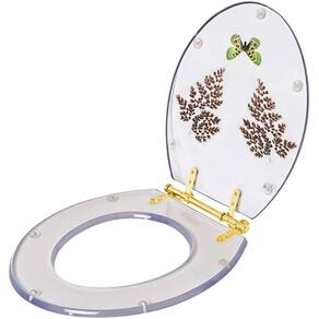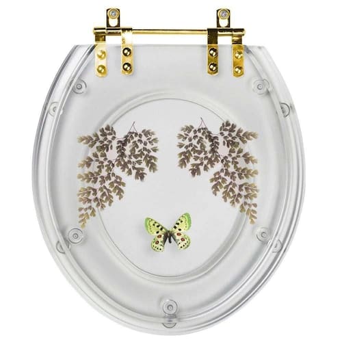 Assento Sanitário Decorado Oval Convencional Transparente Com Borboleta Verde Para Todas As Marcas Com Ferragem Dourada O Assento Sanitário Decorado Oval Convencional Transparente Com Borboleta Verde para todas as marcas Com Ferragem Dourada é a opção ideal para quem busca combinar funcionalidade com elegância em seu banheiro. Elegância e Diferenciação: Um design refinado e diferenciais de alto padrão. Com acabamento de excelência e ferragens em alumínio anodizado na cor Dourada que não oxidam nem enferrujam, ele é a combinação perfeita de beleza e durabilidade.