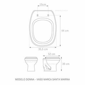 Especificações: - Dimensões da caixa: largura: 50,00cm, altura: 4,00cm, comprimento: 40,00cm - Acabamento: brilhante - Uso: adequado para uso na louça Santamarina modelo Donna - Garantia: 3 meses - Itens inclusos: tampa e assento, parafusos e embalagem duplamente reforçada
