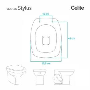 Este assento sanitário é compatível para uso em vaso sanitário Celite modelo Stylus com ou sem caixa acoplada.