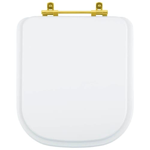 Assento Sanitário Gap Branco para vaso Roca Com Ferragem Dourada é a escolha perfeita para seu banheiro trazendo beleza e praticidade. Esta Tampa de Vaso é produzida em MDF com pintura laqueada, acabamento brilhante e ferragem dourada que não enferruja. É compatível para uso em vasos sanitários com ou sem caixa acoplada. É muito rápido e fácil instalar, acompanha parafusos de fixação e com apenas uma chave de fenda é possível instalar no vaso sanitário. Entrega garantida e rastreada com embalagem dupla reforçada.