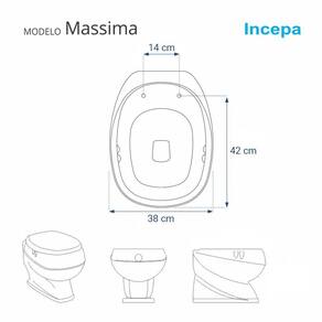 Este assento sanitário é compatível para uso em vaso sanitário Incepa modelo Massima com ou sem caixa acoplada.
